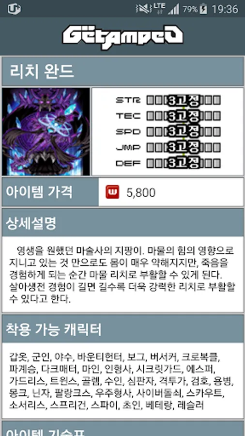 Price of the attack, character information, update
