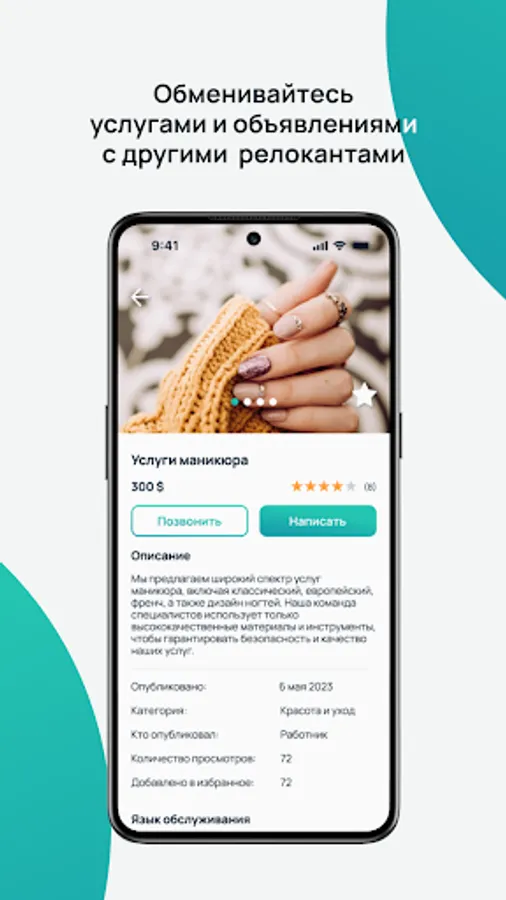 Through our application, you can find or list your own services, services and businesses, as well as buy and sell various items and goods, among relocators permanently or temporarily living abroad. Moreover, you can chat, meet and find useful contacts in our user-friendly interface. We will also keep you informed about all the events related to the Russian-speaking community abroad.