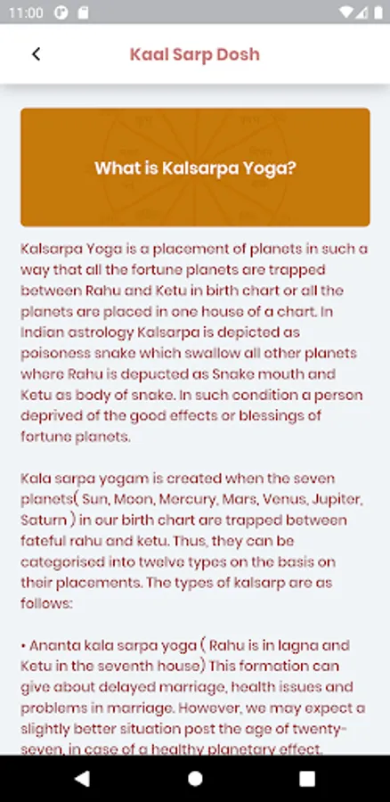 Download the app now and get an accurate prediction of Kaal Sarp Yoga based on your Kundali!