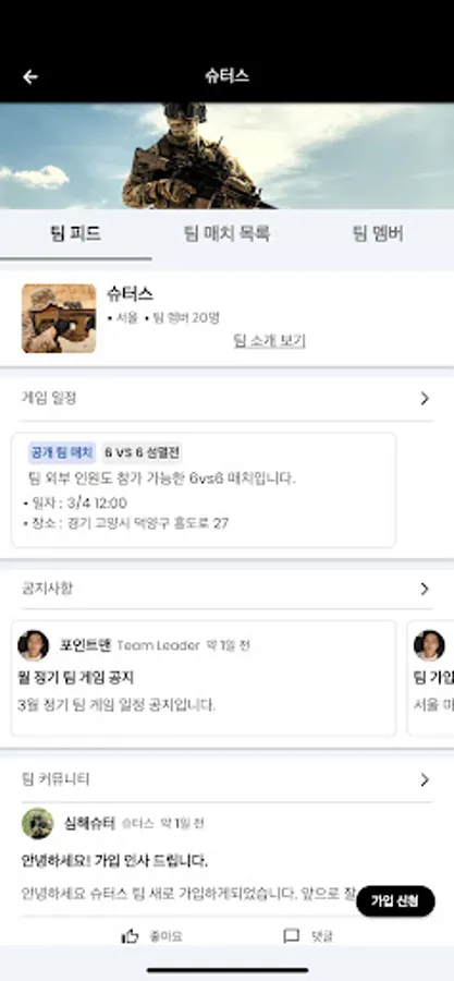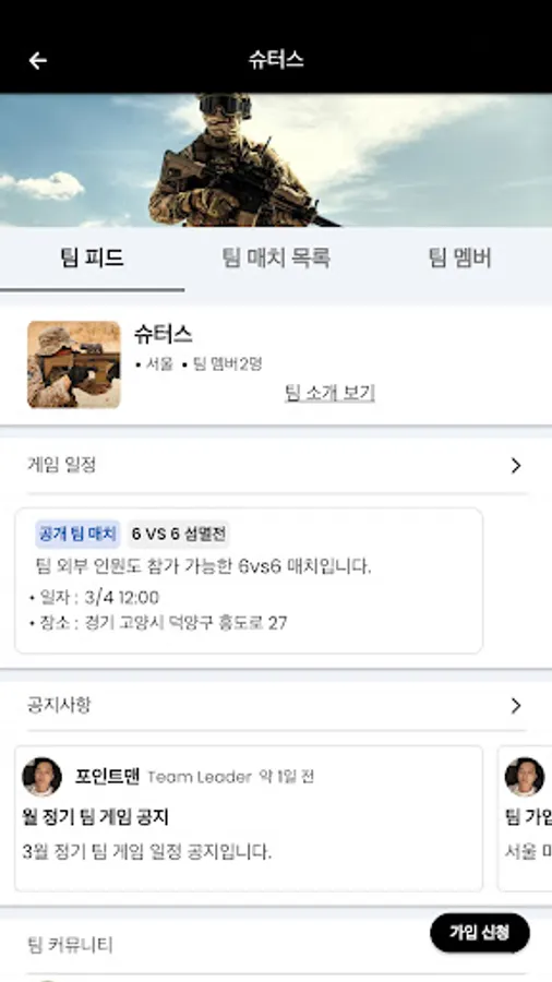If you register a team game schedule, you can check the game schedule by being exposed to the team feed, and you can also register the number of participants, so you can manage the number of people per game.