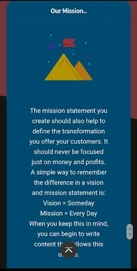 The mission statement you create should also help to define the transformation you offer your customers. It should never be focused just on money and profits.