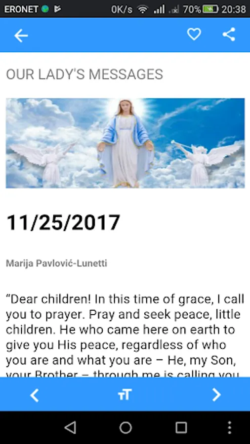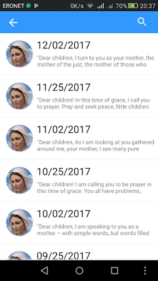The application for browsing messages of Our Lady in Medjugorje visionaries. When you start to load the latest messages that Our Lady has given the visionaries in Medjugorje