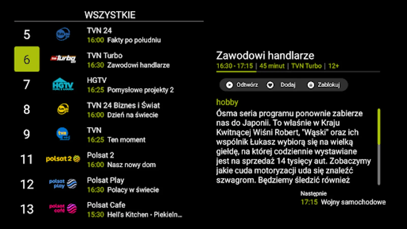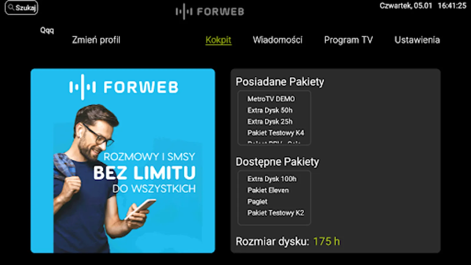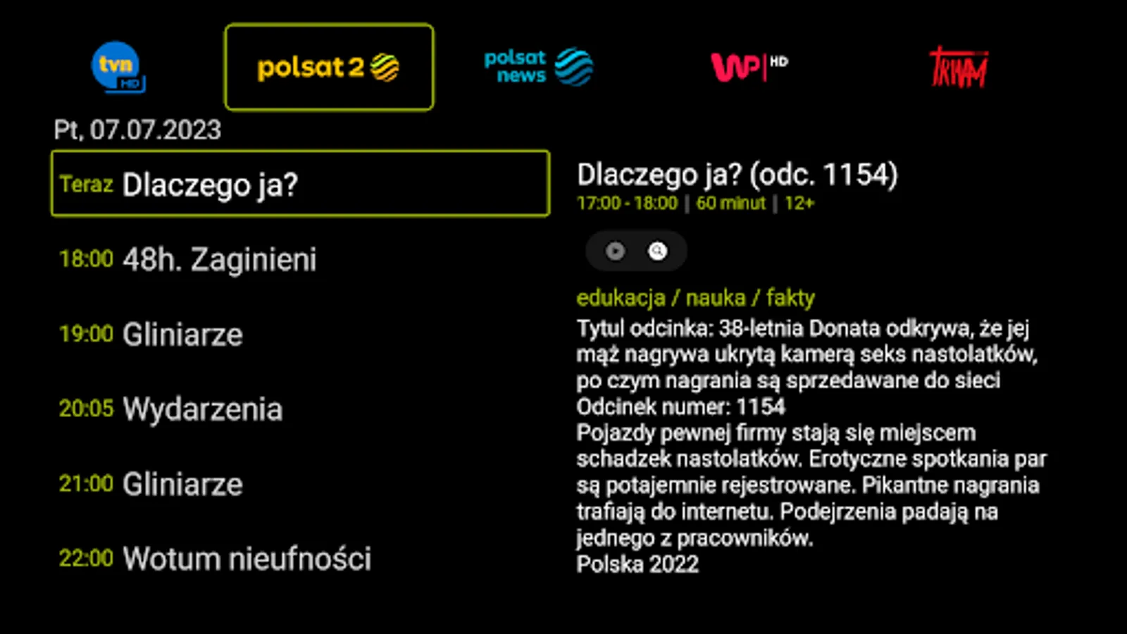 A live TV streaming application for subscribers of Metroport's partner operators. MetroTV provides functionalities such as: a wide selection of live channels, watching up to 24 hours back on selected channels, a user-friendly graphical interface, profiles that allow you to customize the application to your preferences, the TV program and a search engine that allows you to conveniently check available program items, the ability to order channel packages from the application dashboard.