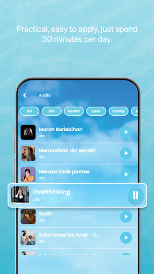 Enjoy more than 100 online Hypnotherapy content for daily needs. Practical, easy to apply, just spend 30 minutes per day. See changes in your life and happiness