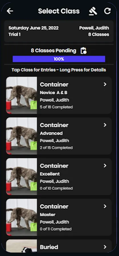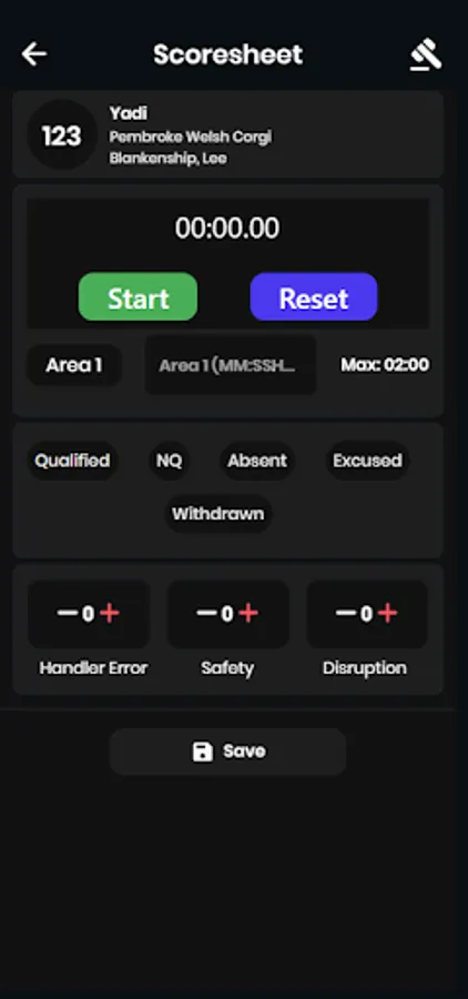 The manual stopwatch used by the timer and judge is replaced by the myK9A App. The team is timed and scored at ring side in real time. It is in effect a digital check-in and scoresheet. This is not meant to replace a Judge's paper scoresheet, but to reduce the need for data entry by the trial secretary.
