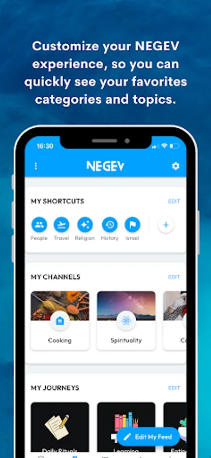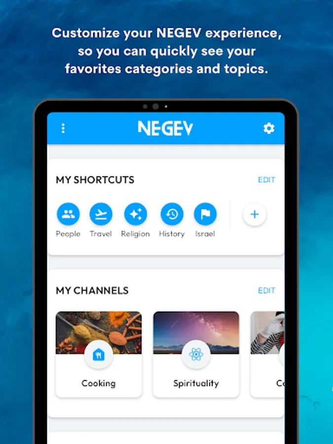 Customize your NEGEV experience, so you can quickly see your favorite categories, topics, and channels.