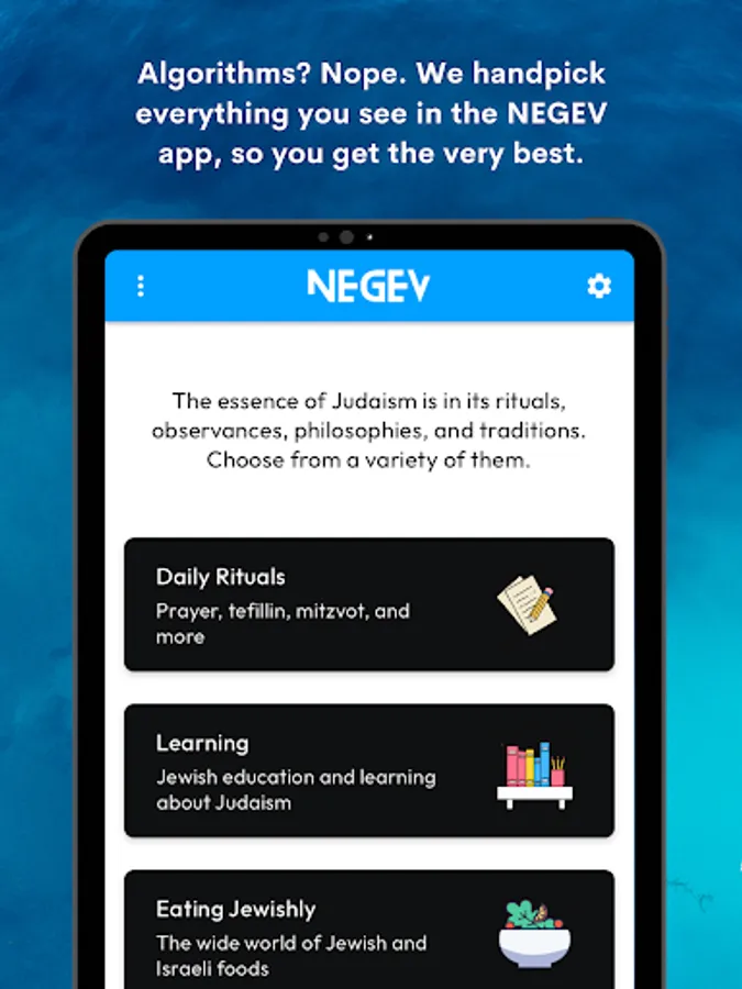 NEGEV delivers you the wide world of Judaism and Israel, all in one place, according to your passions and interests!
