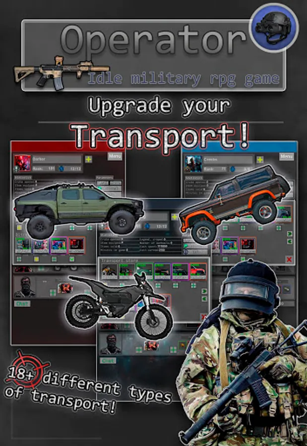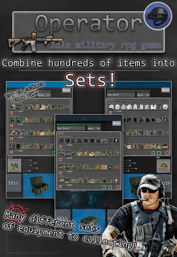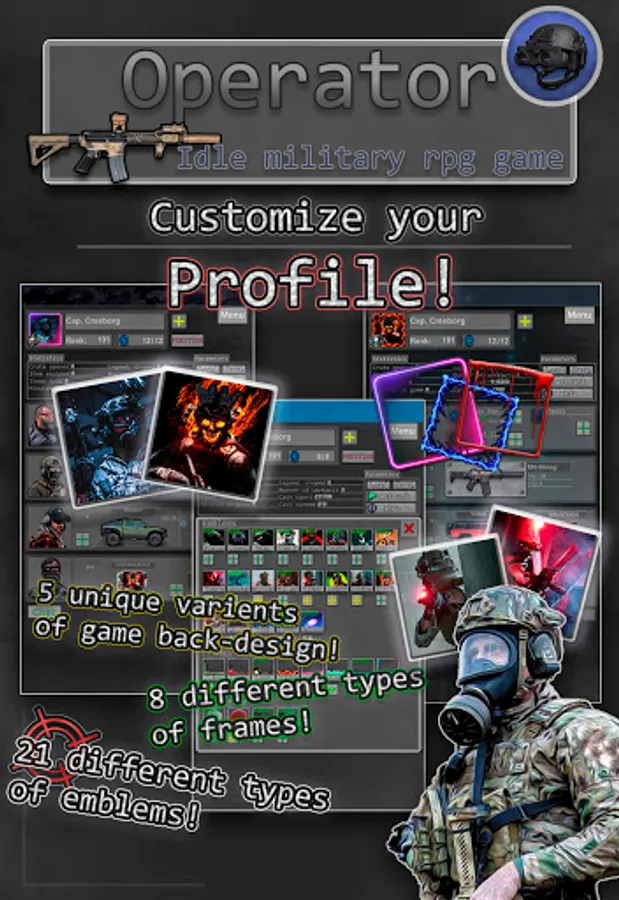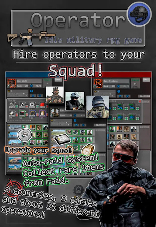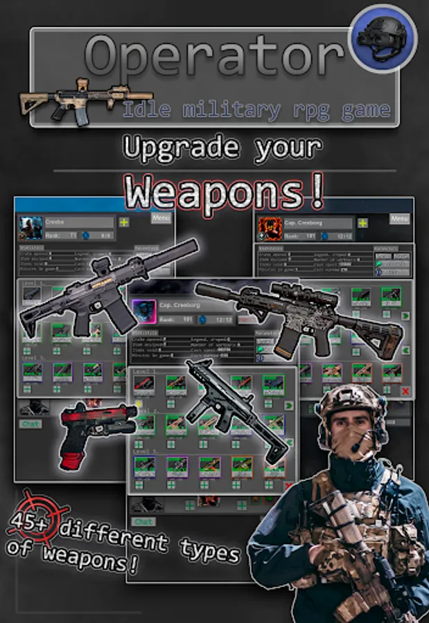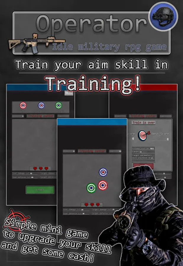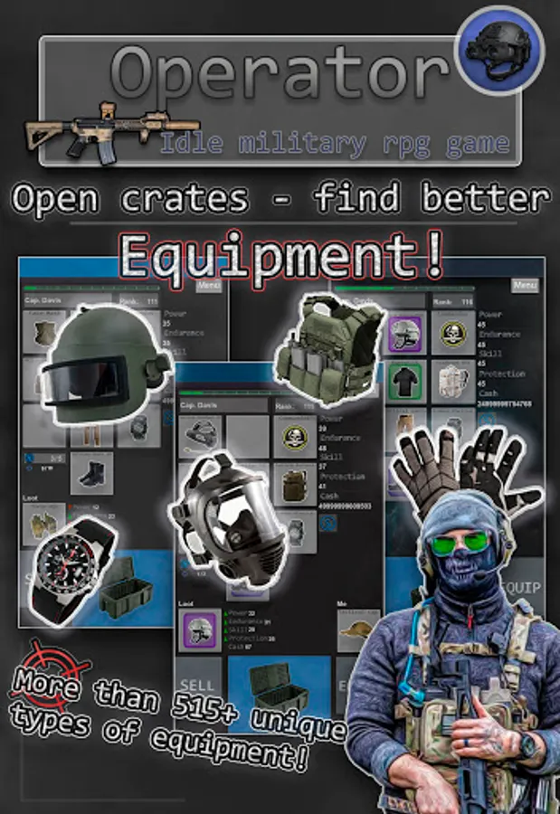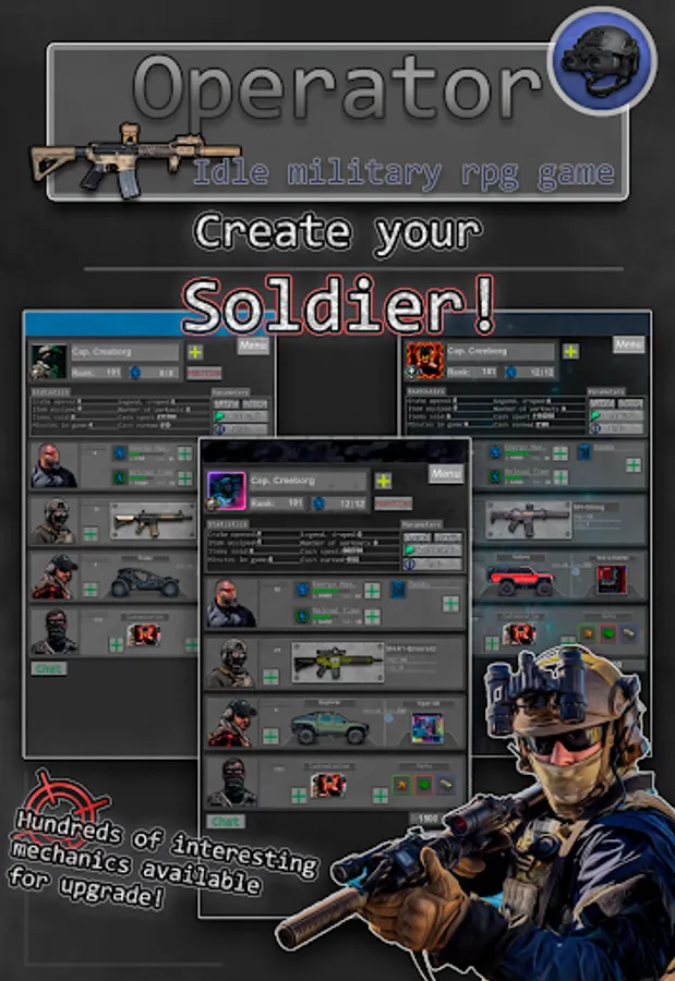 Operator - idle military RPG game, which allows you to create your unique fighter.