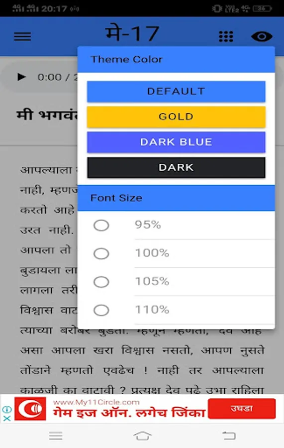 2) Online Audio playing (mp3). User can click on Play button on Top.It will start automatic