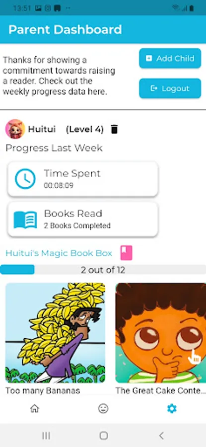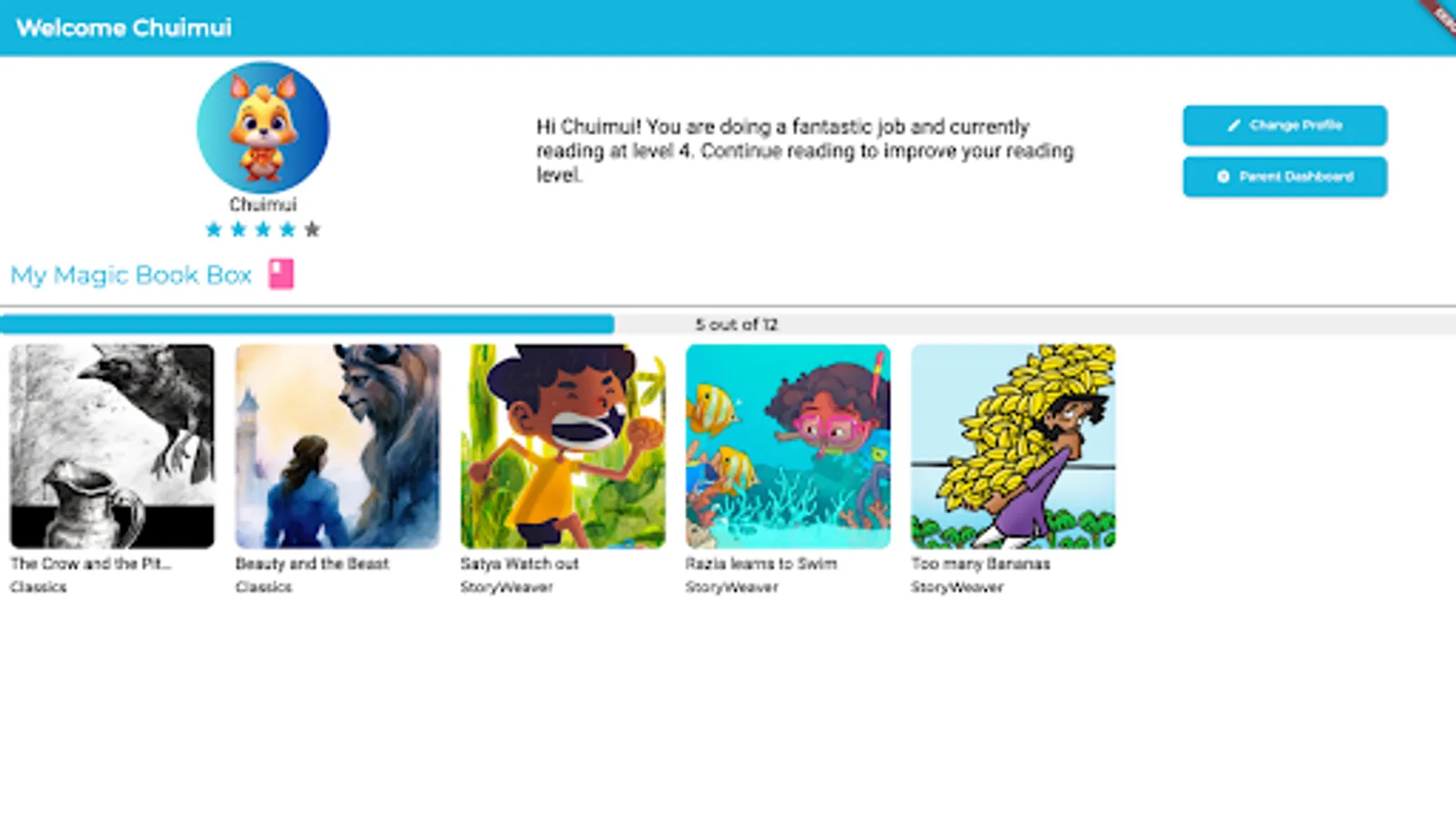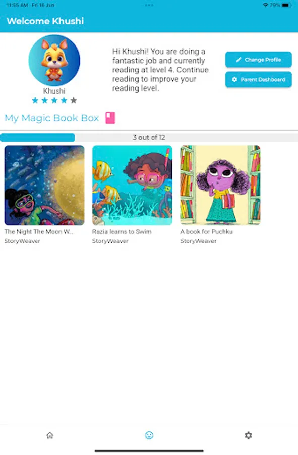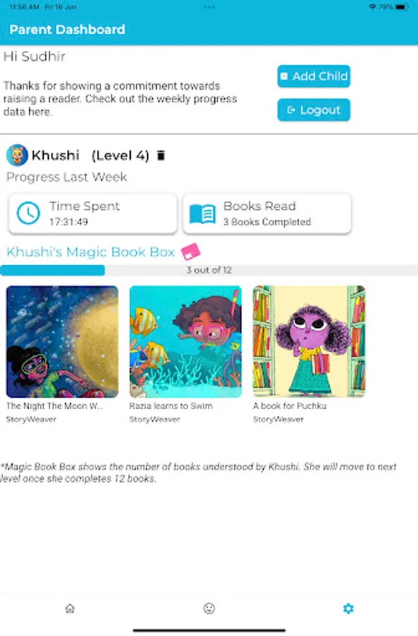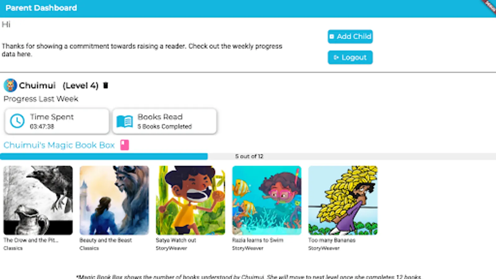 4. Parent Dashboard to review reading progress of the child and assist accordingly