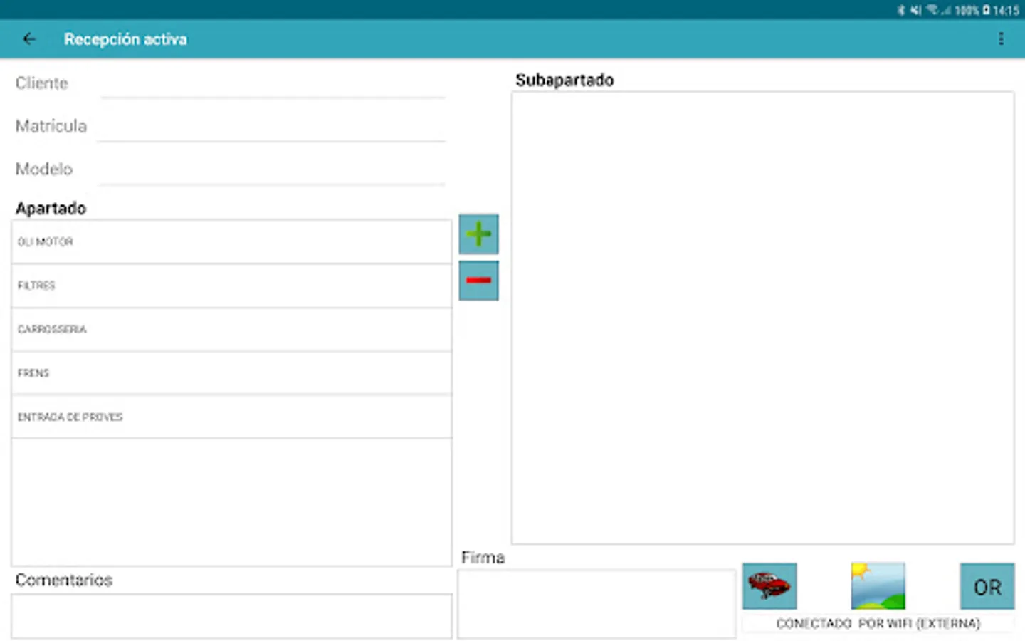 App to be used in mechanical workshops for the active reception of vehicles that use the ERP supplied by Tecofisa, S.L.