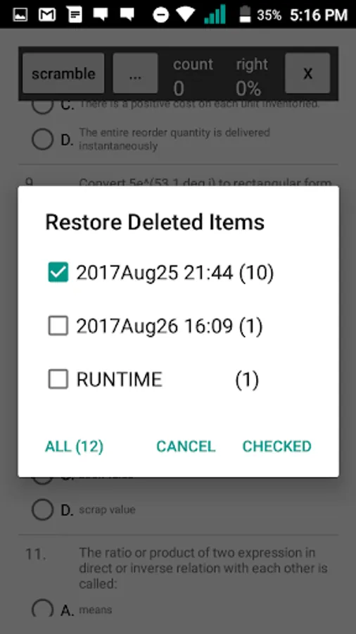 Scramble the test, delete questions already familiarized.