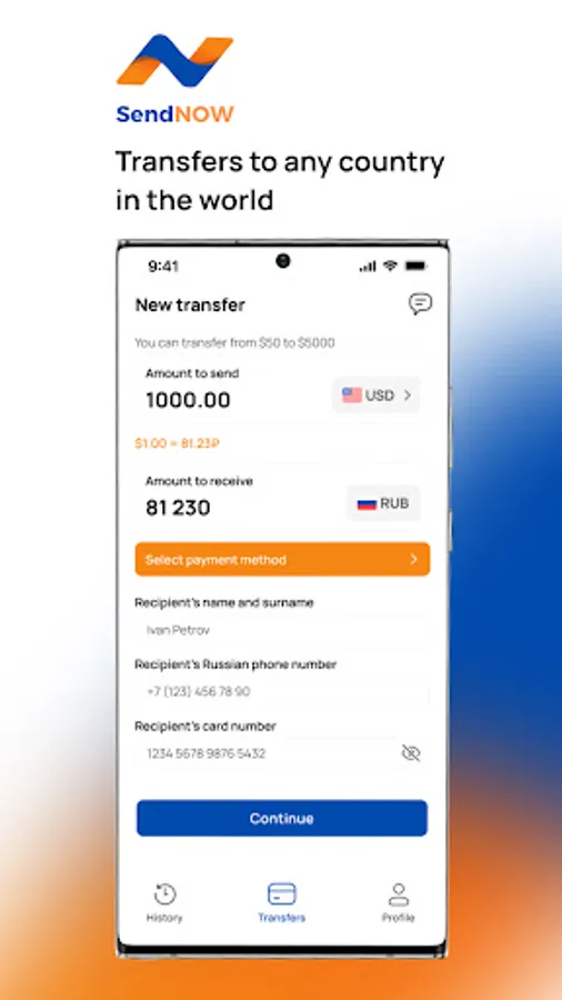 With SendNOW you can make money transfers to Russia, Ukraine, Egypt, India, Pakistan, Bangladesh, Nigeria, Uzbekistan and other countries. We will help you: