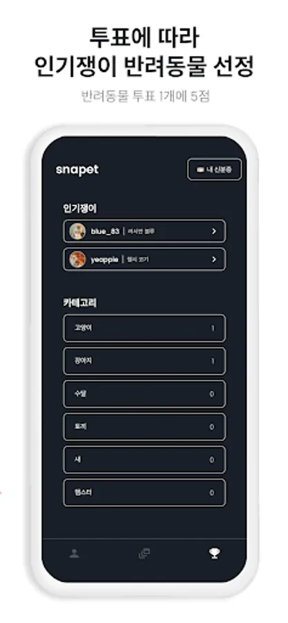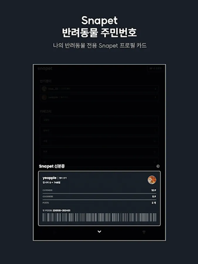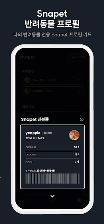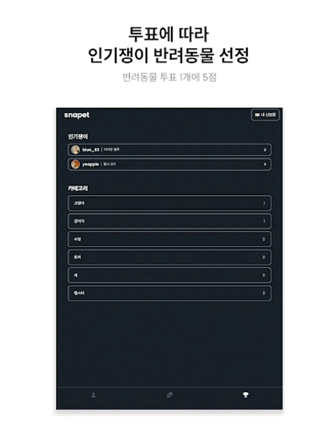 • "Cute" / "Cool", you can vote by posting a picture. Get opinions from others whether your pet is cute or cool. When you reach 10,000 points, you can apply for a Snapet certification mark.