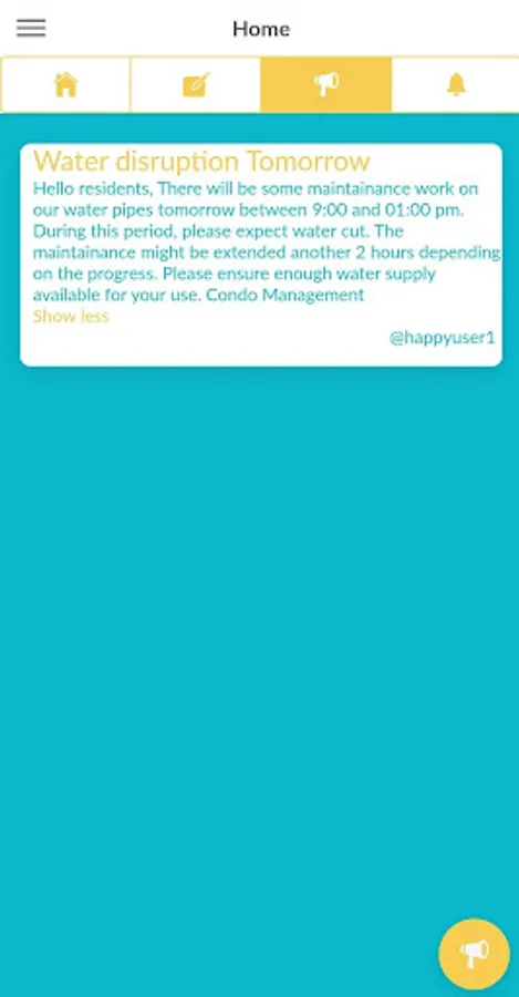 The App enables Condo residents and owners to interact with each other via public and private chat channels. In addition, people can promote their home businesses, and read management announcements via the App.
