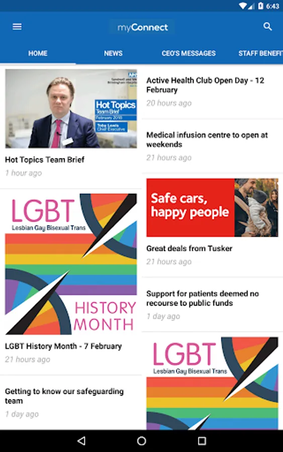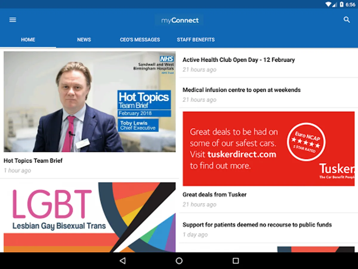 myConnect lets you access news and blogs from across the Trust as well as access exclusive staff benefits packages.