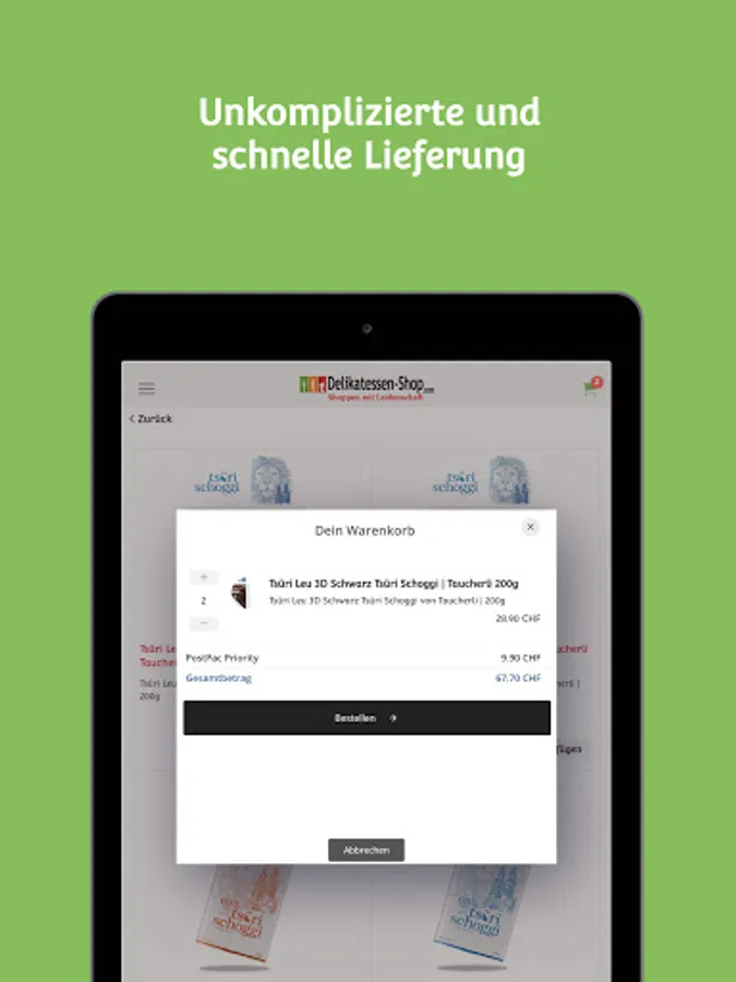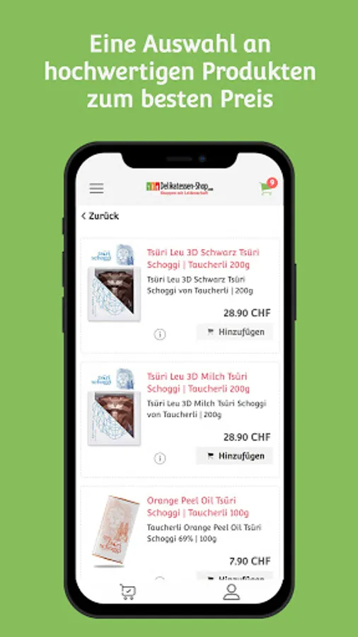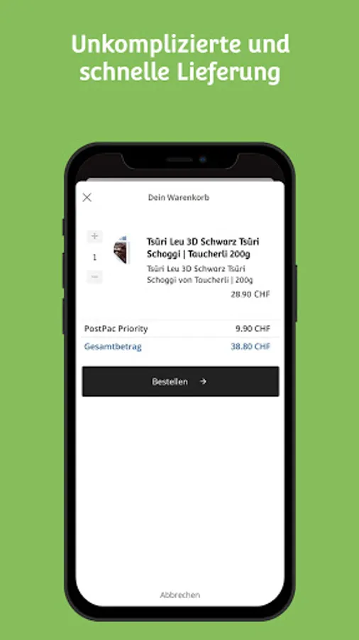 In the delicatessen shop app, you can pay cashless, securely and quickly with all major credit cards, PayPal, payment in advance / bank transfer or TWINT.