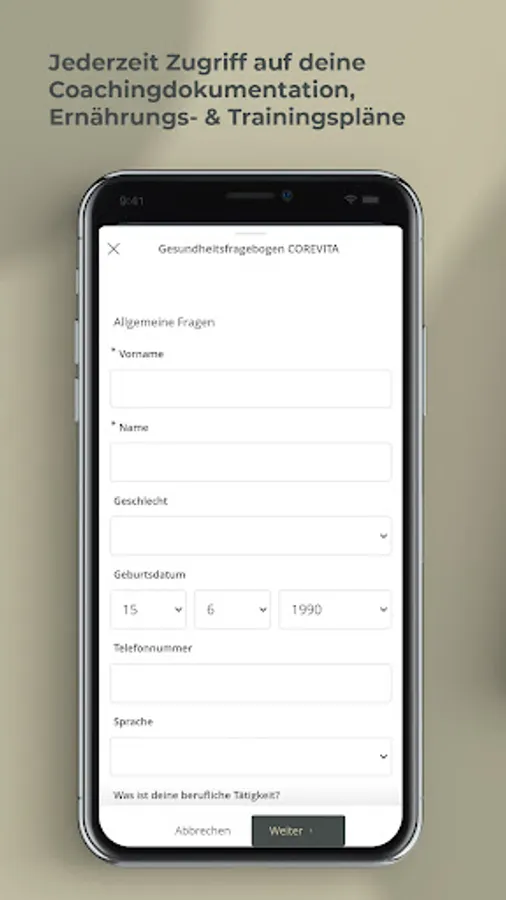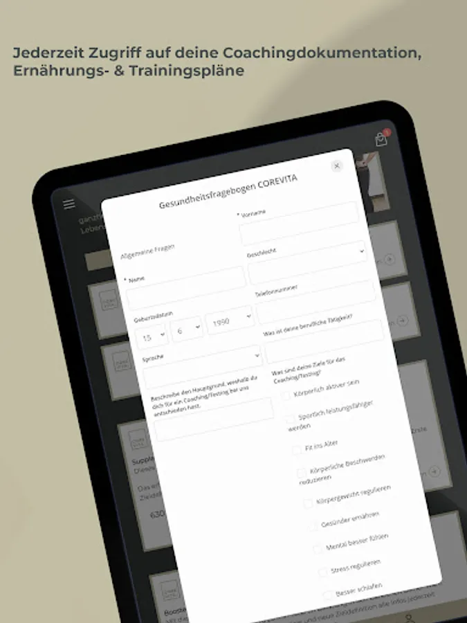 • Access to your coaching documentation and individual diet and exercise plans at any time and from anywhere.