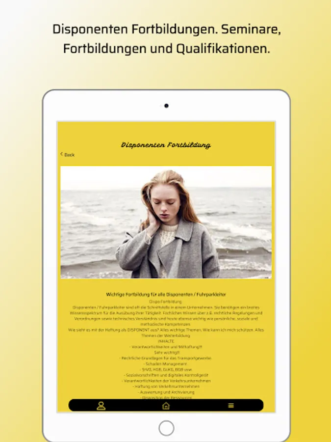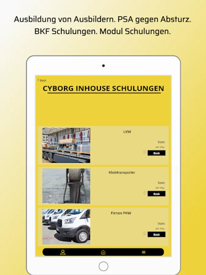 With the app you have the opportunity to book appointments for your training courses quickly and according to your wishes. Simply download it in the appropriate area, click on bookings, then select an appointment in the calendar, done.
