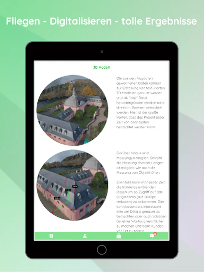 The data obtained from the flight data can be used to create textured 3D models and stored as "obj." File can be downloaded or viewed directly in the browser. The great advantage here is that the project can be viewed from all sides at any time.