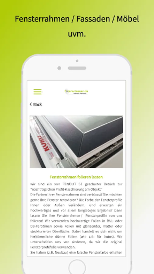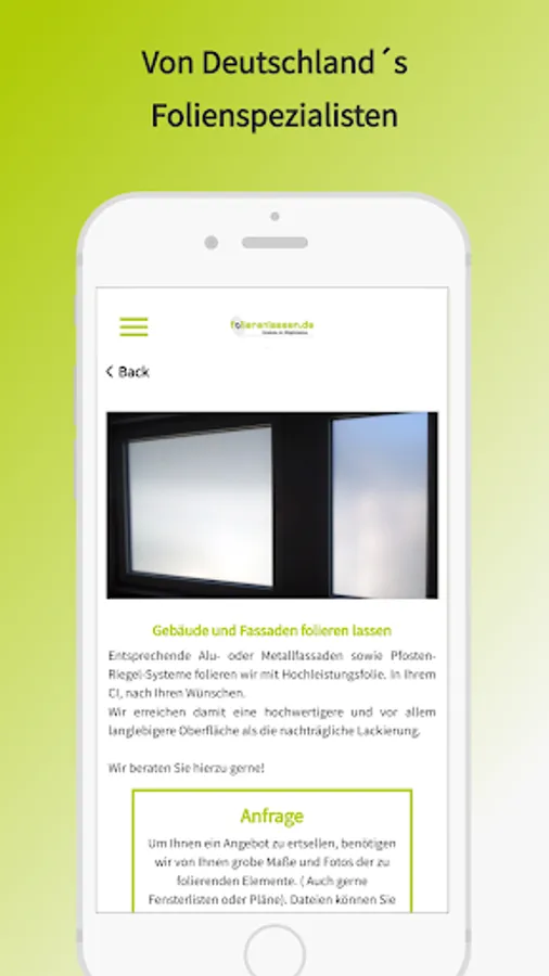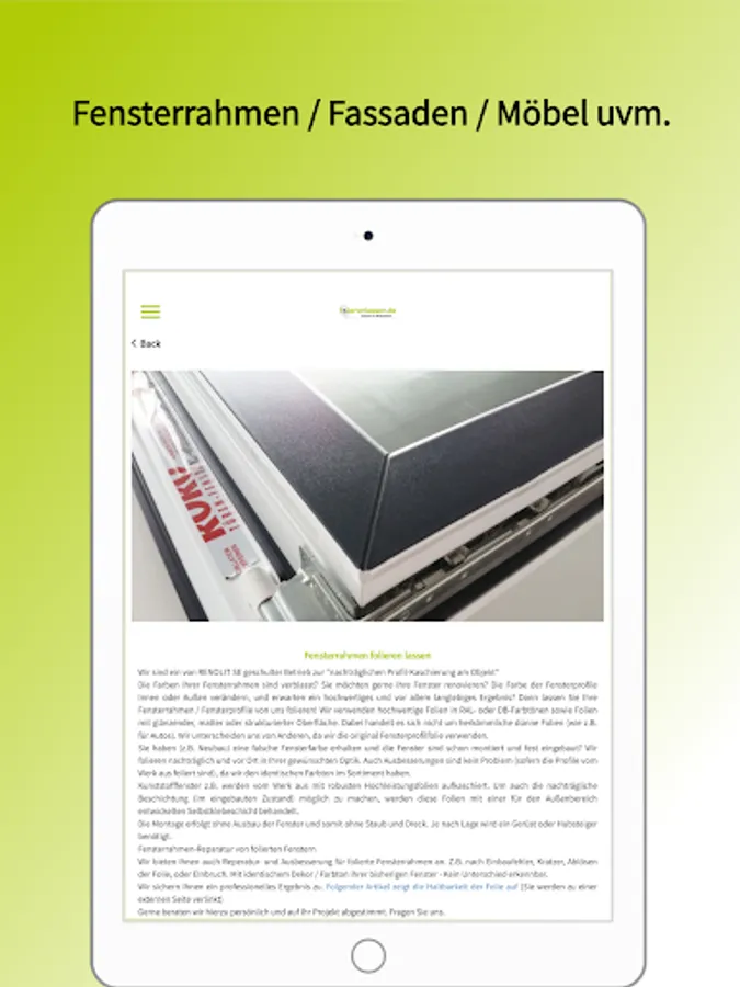 Download our app and discover the possibilities with high-performance films for windows, facades, cars, furniture and much more! You can use the app to get information about our services and products. Send us your request and receive an offer.