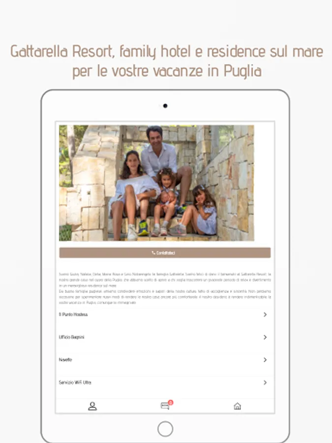 The Gattarella Resort is pleased to launch the new mobile application that allows access to all the services offered during the stay of our guests to make your family vacation even more pleasant and organized.
