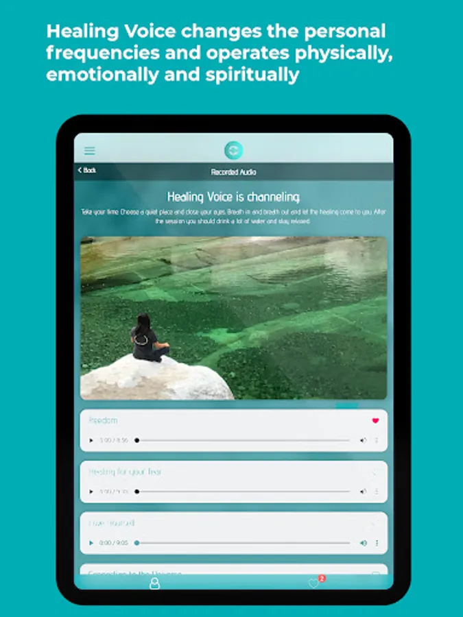 In this app you will find recorded Healing Voice, live sessions, messages from Krisztina's Spiritual Guides, and Heart Melodies to sing together. Listen to and relax. Download the app now. Every 2 weeks new Healing Session are available.