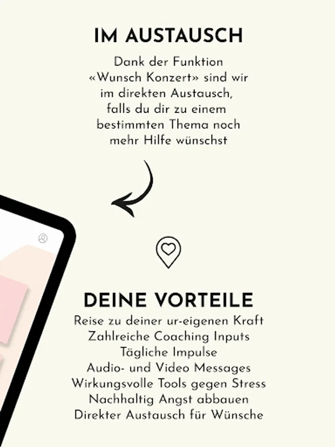 You can expect daily impulses, audio and video messages, efficient tools and methods to reduce stress, understand fears and dissolve blockages so that you can believe in yourself, feel happy and full of good energy to stand up for yourself.