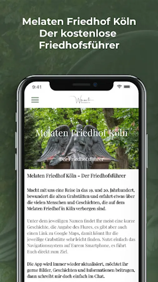 The app is constantly being updated. If you would like to contribute pictures, stories and information, then simply write to me at info@womeli.de