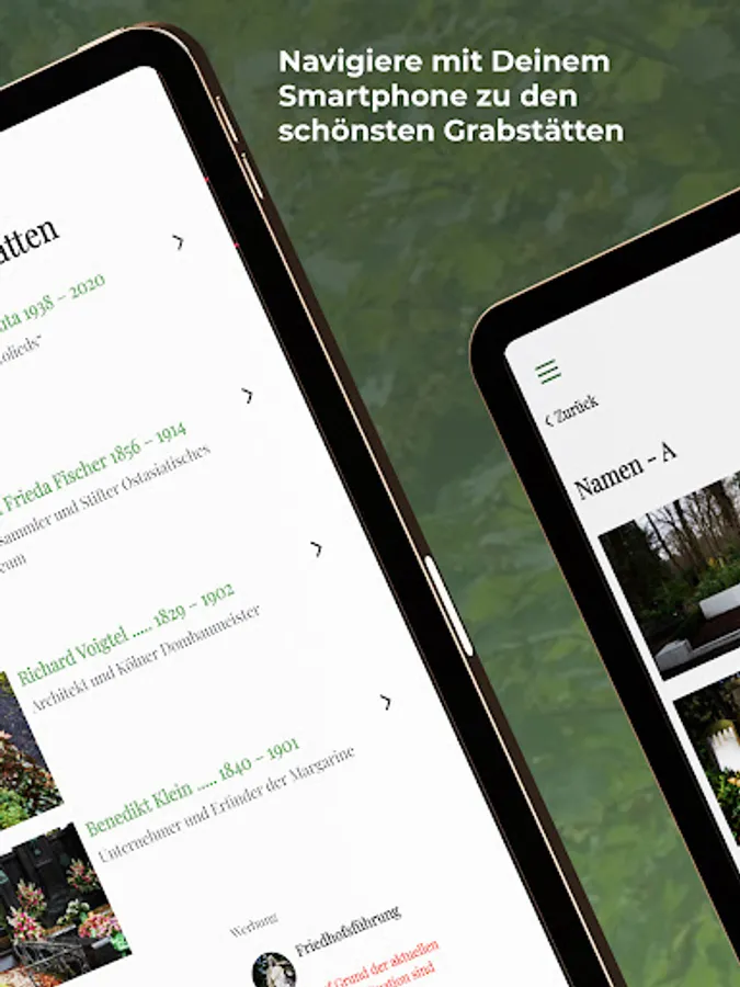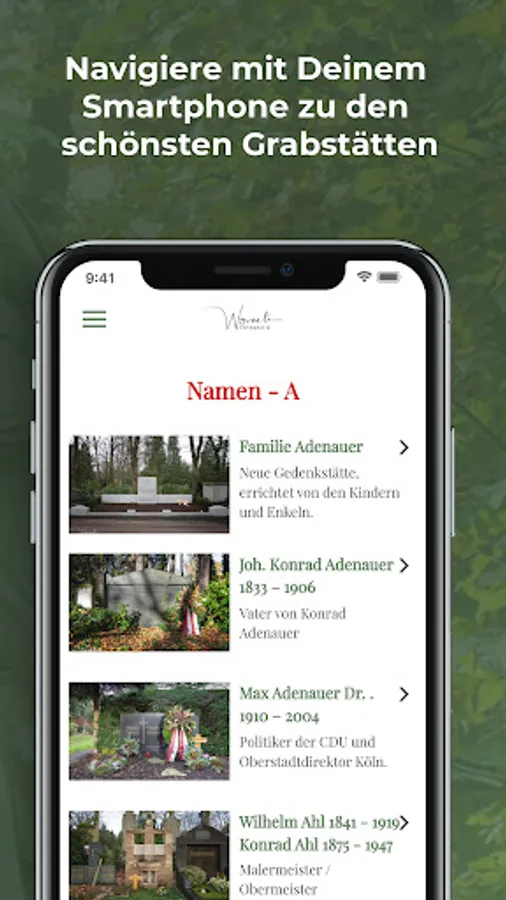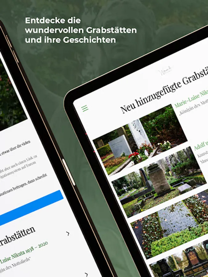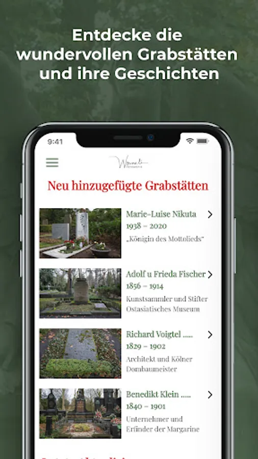 Under the respective name you will usually find a short story, the indication of the hallway, but there is also a link to Google Maps, so you can find the respective grave very easily. Simply use the navigation system on your smartphone, it will take you straight to your destination.
