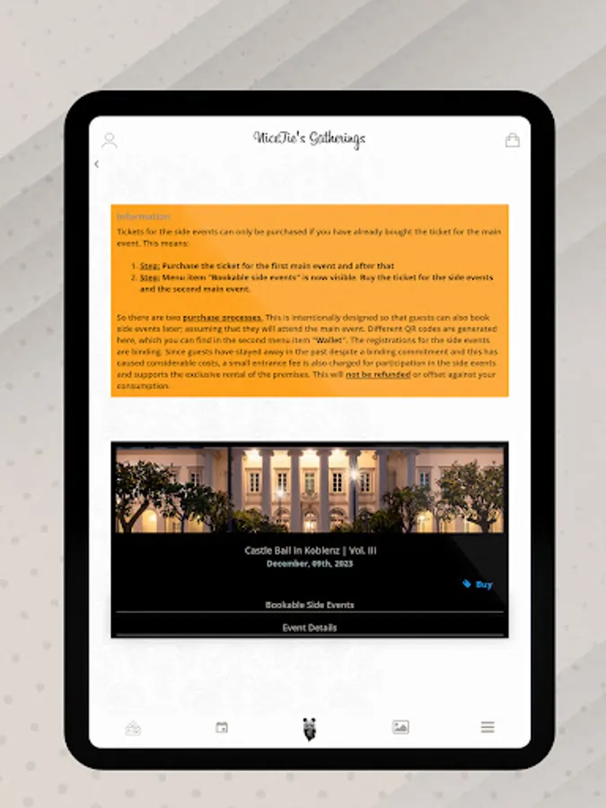 Every incoming registration is checked and verified according to a specified verification process. After said verification, the user is free to purchase private event tickets and view the whole app content. Prior to this, access to the app content is limited. Questions, suggestions, and feedback are always very welcome and can be forwarded to the organizers in the app. Always striving to keep the execution of the private events clean, safe, uplifting, and exemplary, the selection of the guests is the decisive factor for them, whether national, international, or even intercontinental guests. From the selection of guests to the assigned attendants, to the opening prayer with which each private event begins: everything must contribute to the glory of Jehovah's name.