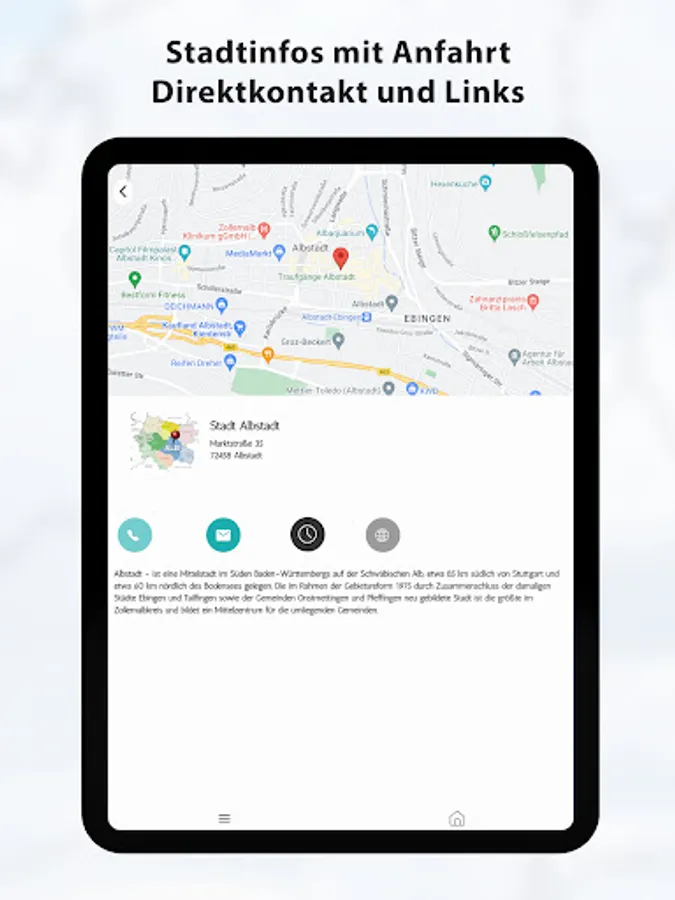 Since 2015 we have been active in the region with individual mobile city company apps Hechingen, Balingen and Albstadt, which were accessed over 150,000 times in 2021.