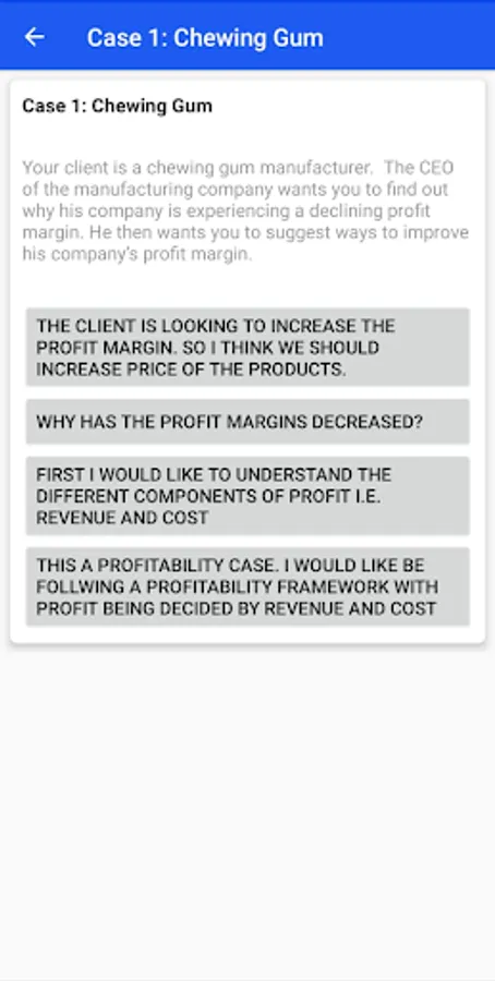 Use "MyConsult Prep" to learn all the frameworks and practice the math to build a solid foundation. Once you are familiar with concepts, you could practice them with the 20+ interactive case studies we have sourced from leading consulting firms.