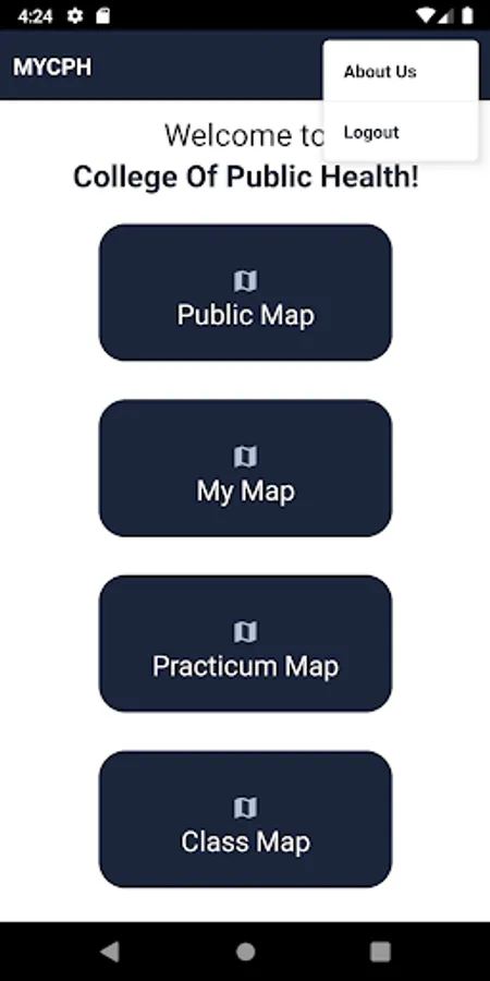 MyCPH is an app used to support belonging and community engagement at Kent State University's College of Public Health (CPH). There are three main types of users of the app. First, General CPH Members (e.g., faculty, staff, students, alumni, etc.) can create their own map of places where they engage in and outside of the CPH. Second, faculty can create ClassMaps for students to use in classes. ClassMaps help students record places of interest to share with their instructors (e.g., places on campus where public health is located). Finally, Intern and Practicum supervisors can use the app to help supervise students completing their undergraduate or graduate responsibilities towards graduation.