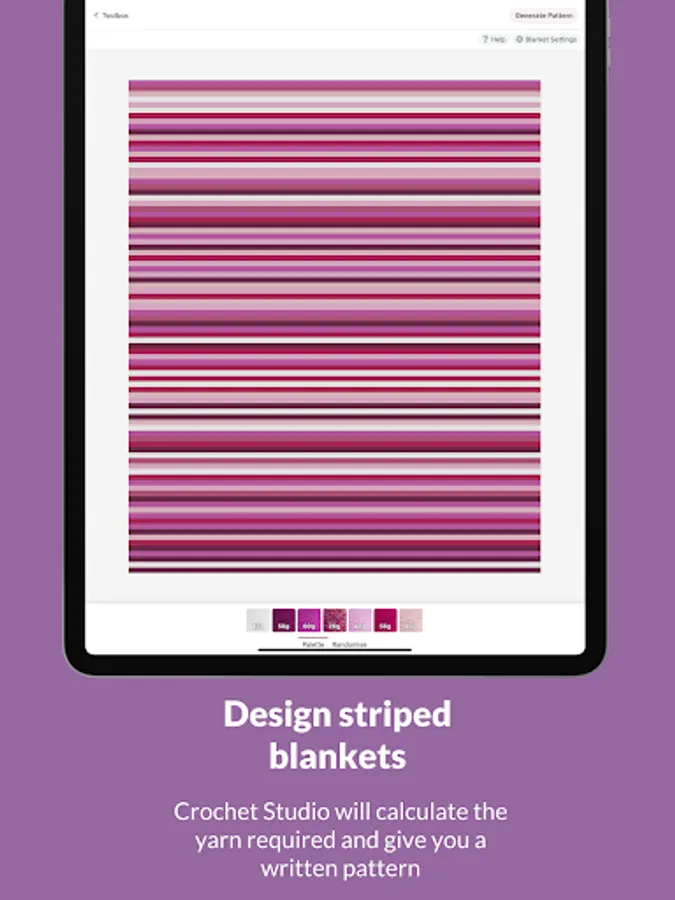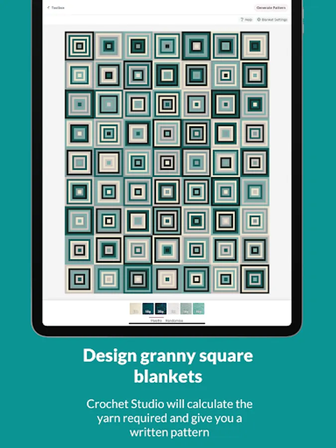Crochet Studio is the ultimate app for crafting enthusiasts. With powerful tools and yarn AI, you can design stunning granny squares and stripe blankets in no time. Our tools are intuitive, easy to use and even calculate yarn usage in real time. Plus, you can generate a written pattern for your finished design.