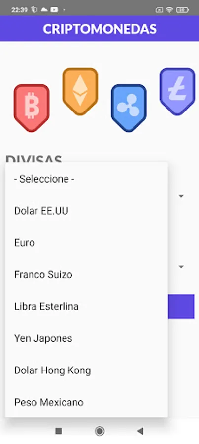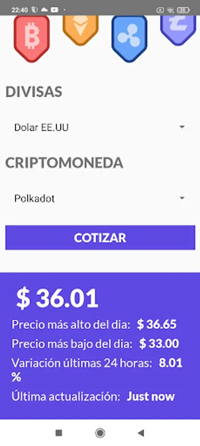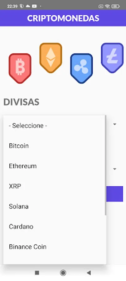 Crypto Calculator is a calculator to find out the price at the moment of several cryptocurrencies and for 10 most important currencies