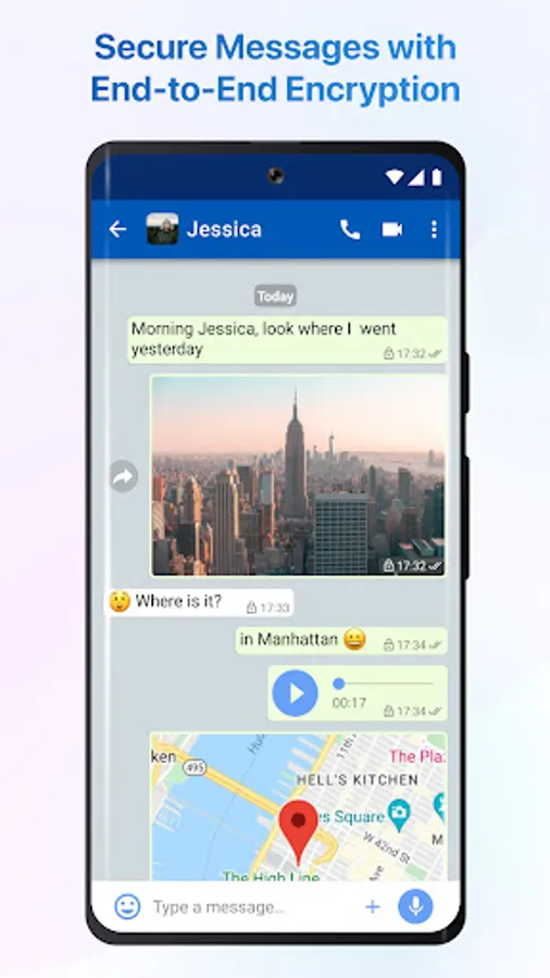 End-to-end encrypted messaging to give you peace of mind about your data security.