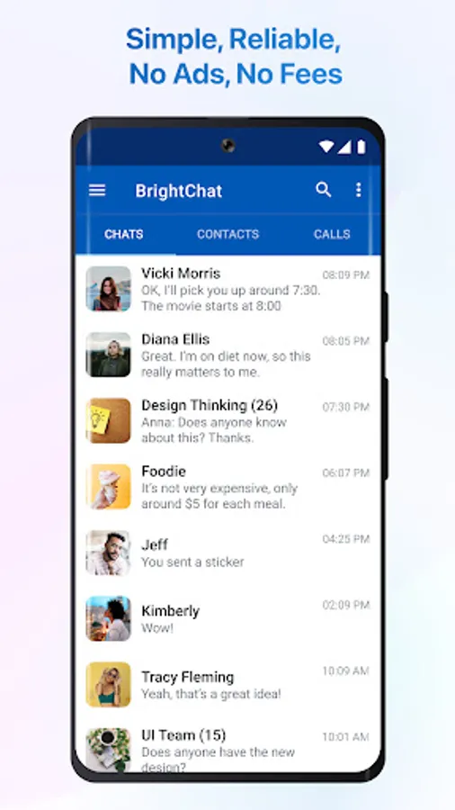 BrightChat is a free, simple, and trusted messenger that connects anyone anywhere. Secure calls and messages based on state-of-the-art end-to-end encryption technology.