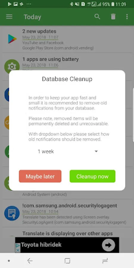 This app is designed to catch your device's notifications and toast messages, which pops up on your device and store them in order to browse and search them later even if they were dismissed. You can also define filters for notifications which are undesirable, so they will not be saved and will not appear in lists or search results.