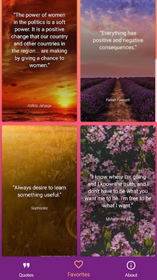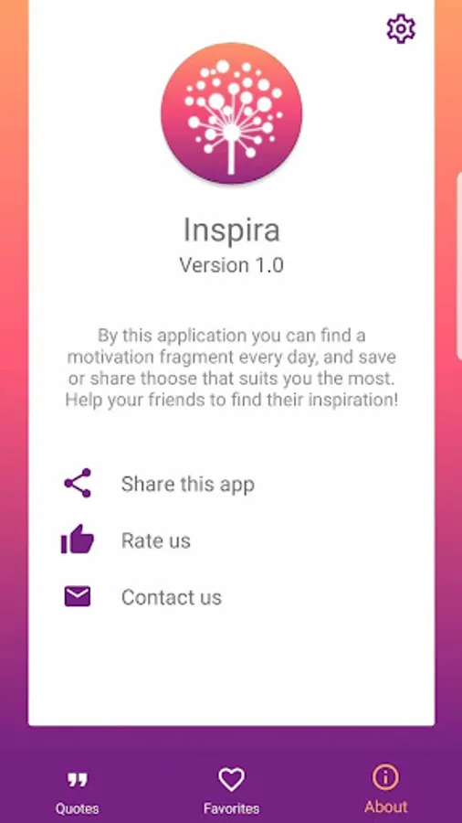 By this application you can find a motivation fragment every day, and save or share thoose that suits you the most. Help your friends to find their inspiration!