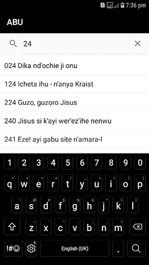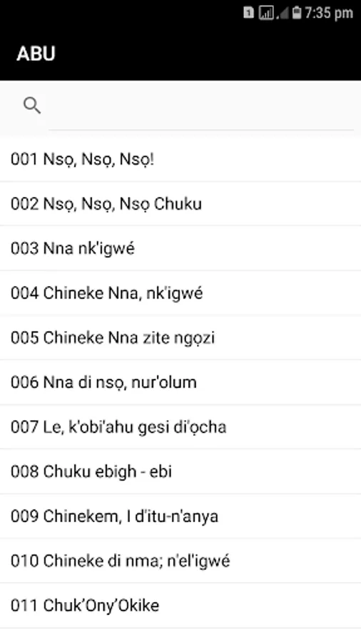 The application provide you with a list of songs for selection and also enable you search for a song using "Song Number" or "Song Title".