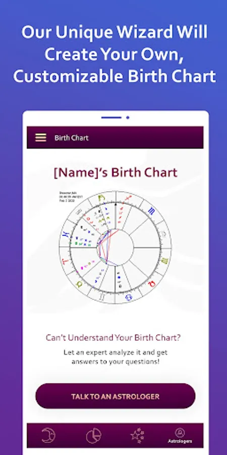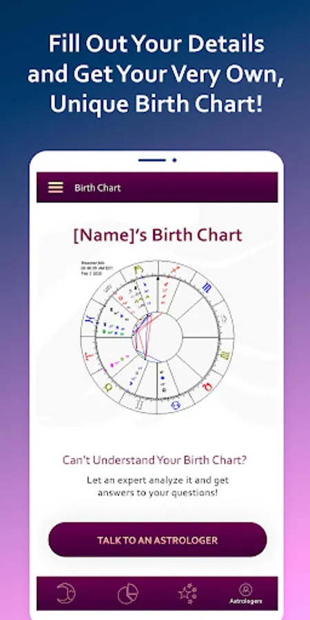 Get your customized natal chart based on the constellation of the stars at the time of your birth