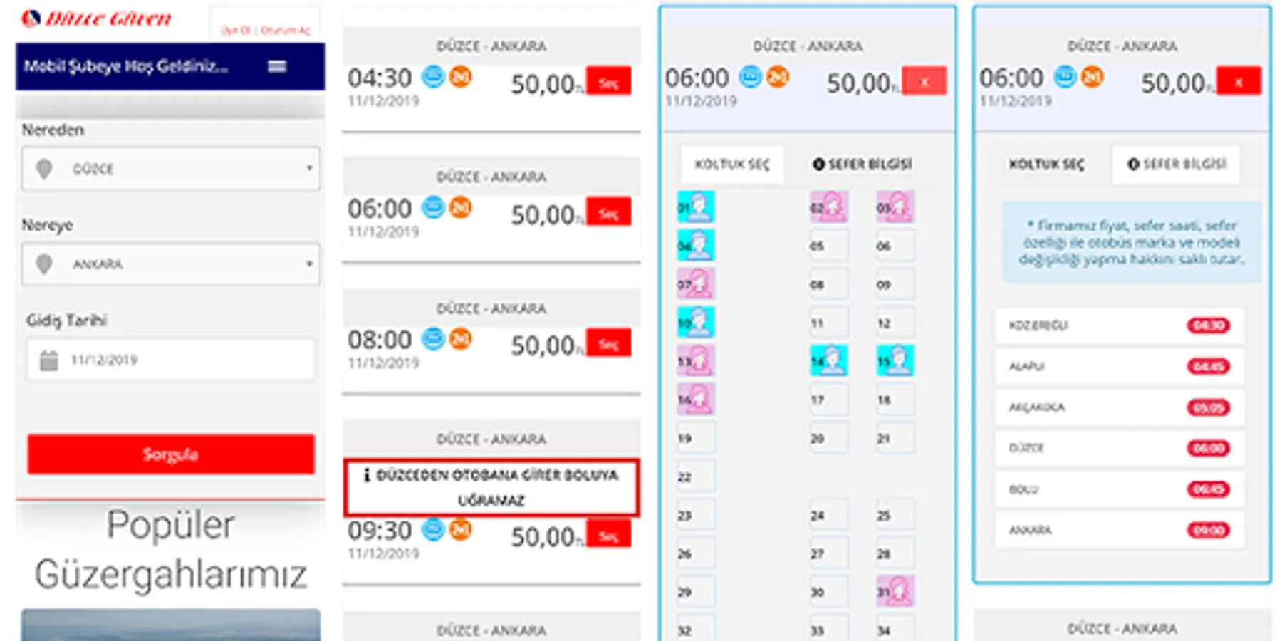 Your journey through Duzce Trust is a pleasure with Turkey's highest quality service. With Zonguldak - İzmir Düzce Güven you can easily buy your bus tickets online.