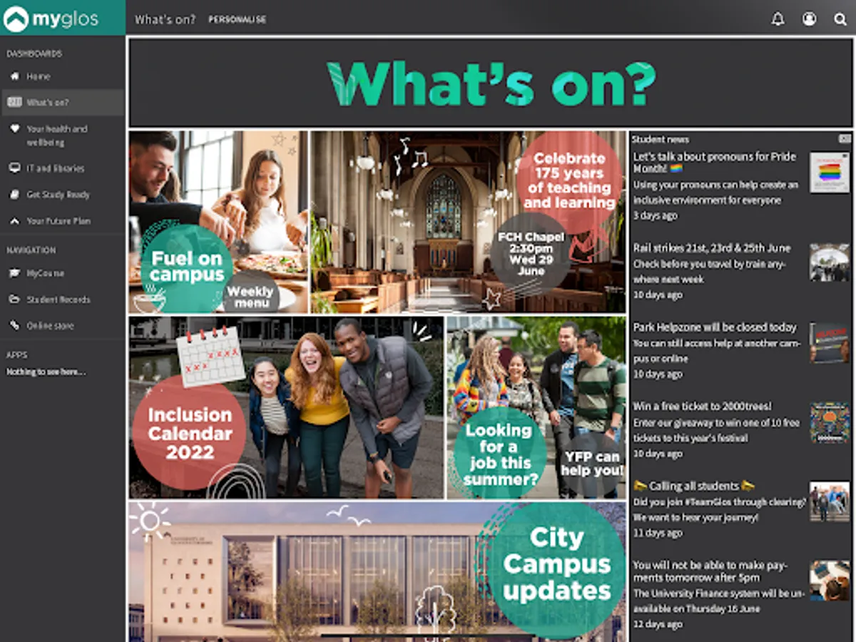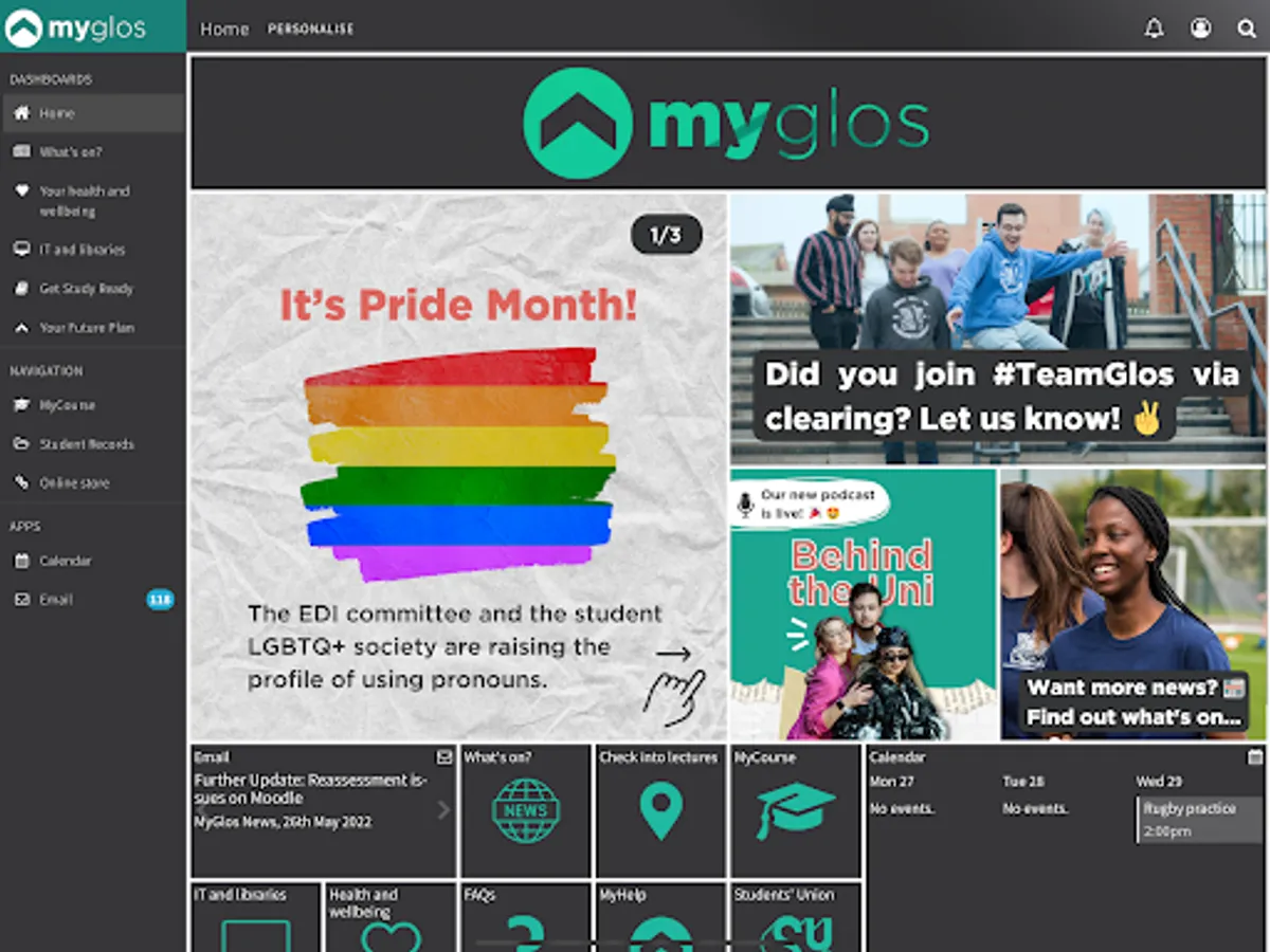 MyGlos is your essential guide to student life and study at the University of Gloucestershire. Get support, news, emails, timetables and much more…