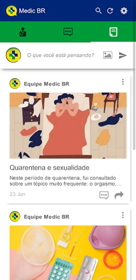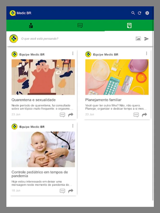 No Medic, all users can publish content in the form of text, photo or video in their perfis