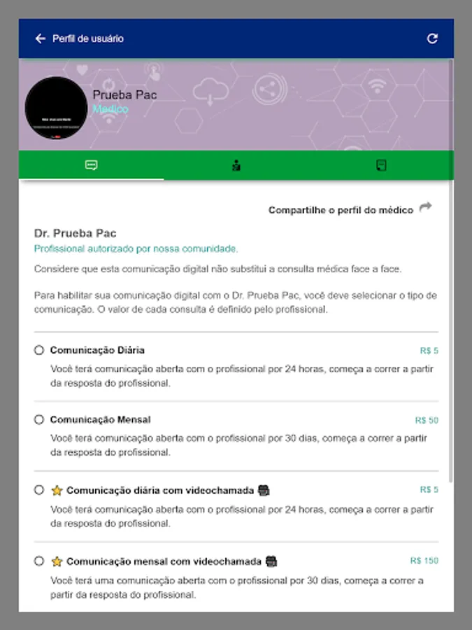 The doctor-doctor and patient-patient communications are free and for an unlimited time. Dessa forma, o Medic enables free consultation between doctors and recommendations of content and profissionais between patients.