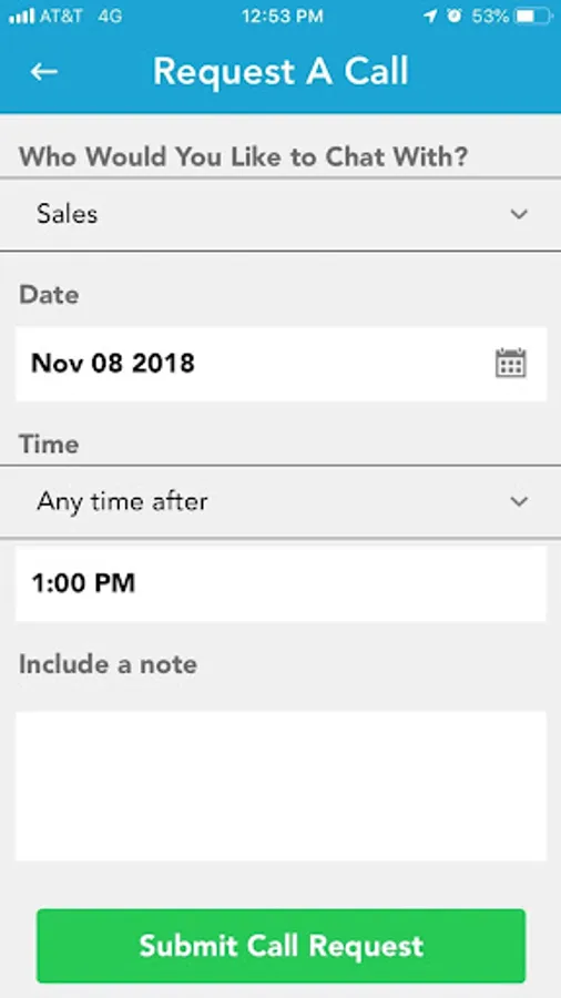 Call Request: Pick a date and time at which you'd like the dealership to call you.