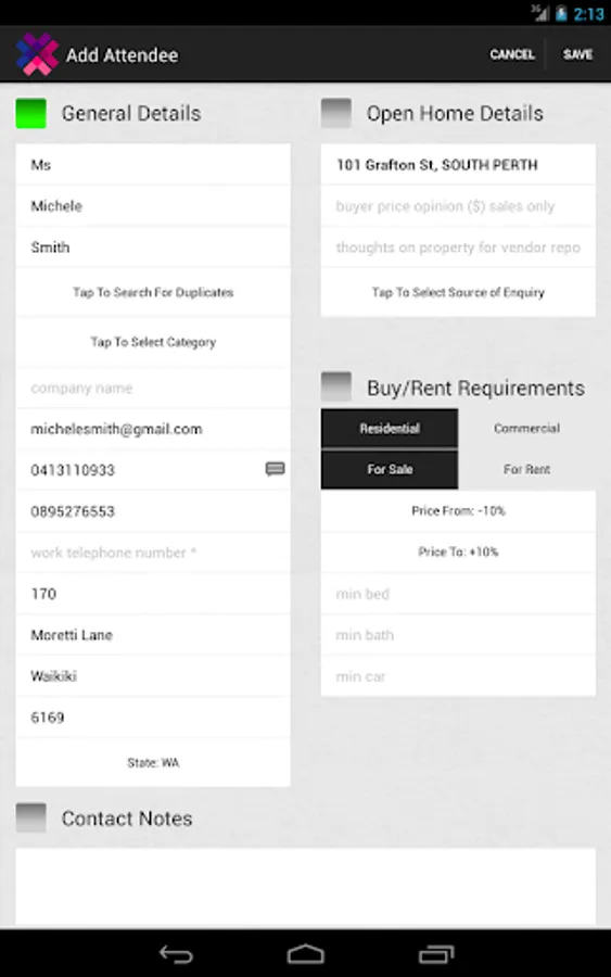 - Add open home attendee details straight into the database, right there on the spot.