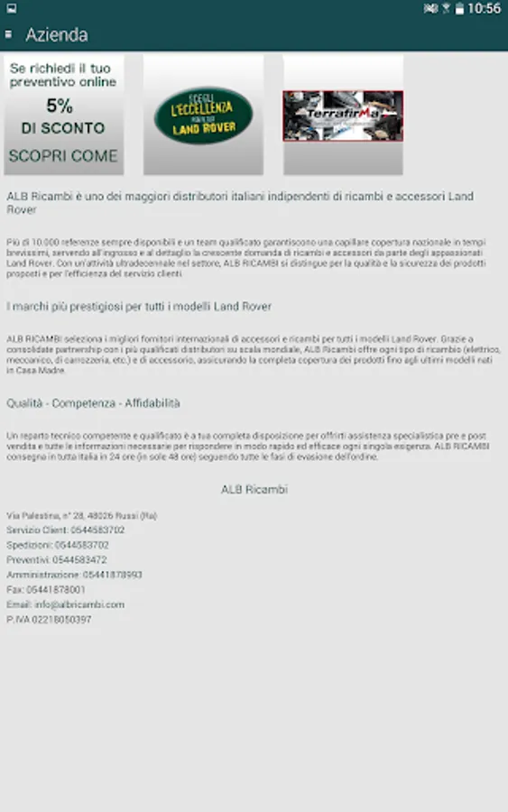 With this app you can see all the catalogs of accessories and spare parts Land Rover updated ALB parts, view the latest company news and related communications. There are also the social features to share news of interest on the major social networks like Facebook and Twitter to show to all your friends the latest news about the world Land Rover.