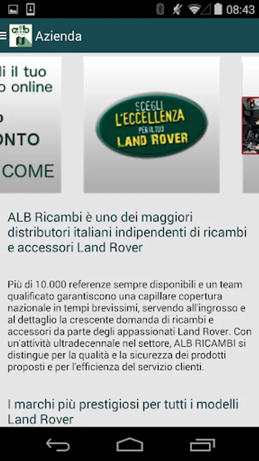 ALB Parts is a leading Italian independent distributors of spare parts and accessories Land Rover.